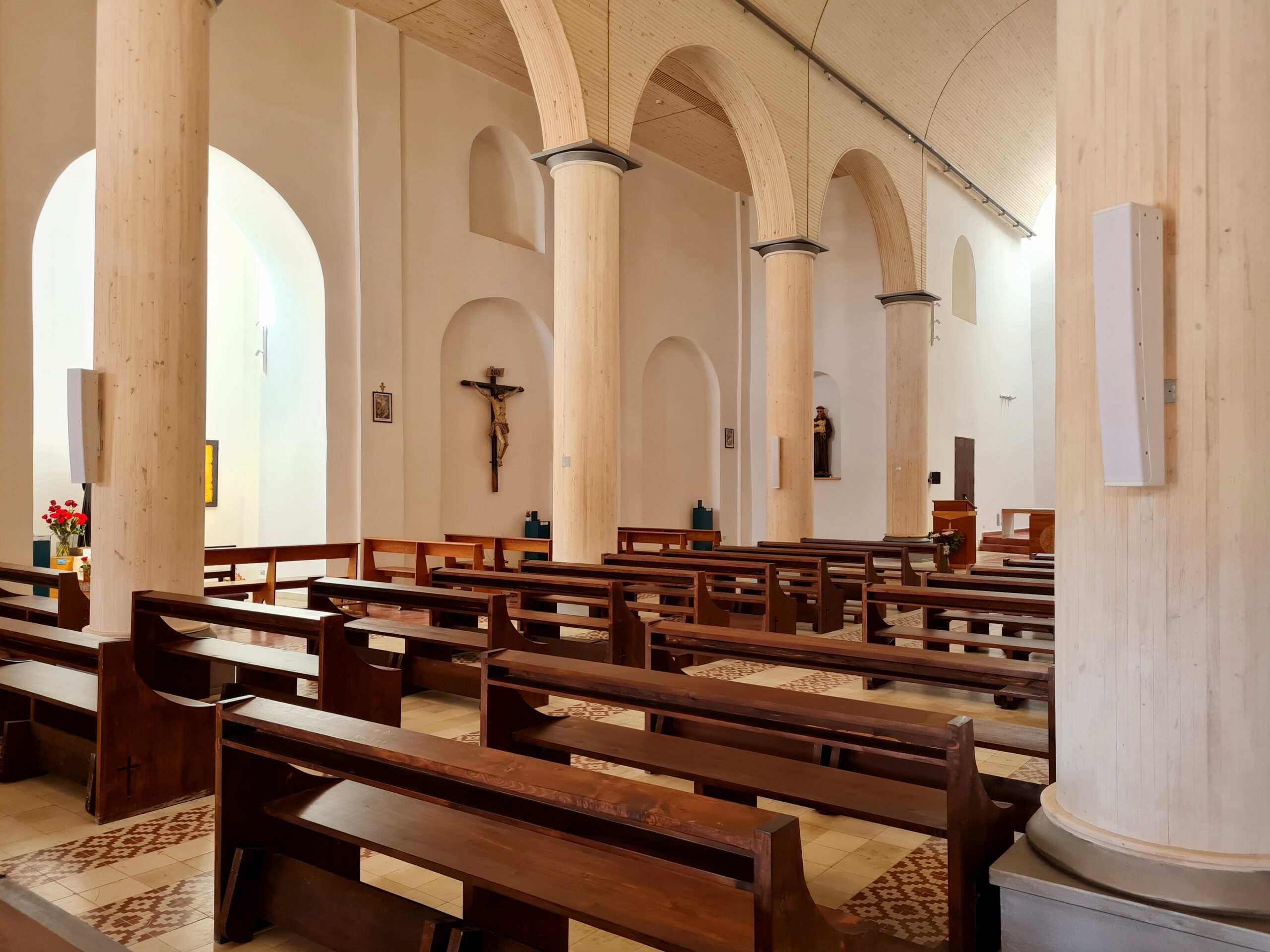 Neben der Leistung waren auch Haltbarkeit und Sicherheit von entscheidender Bedeutung. Die SI Serie P10j erfüllt die Umweltstandards IP55 und ist nach EN 54-24:2008 zertifiziert, wodurch sie sowohl für feuchte Bedingungen als auch für Notfallszenarien geeignet ist. Das Modell ist auch in Weiß erhältlich, sodass es sich nahtlos in das Interieur der Kirche einfügt.