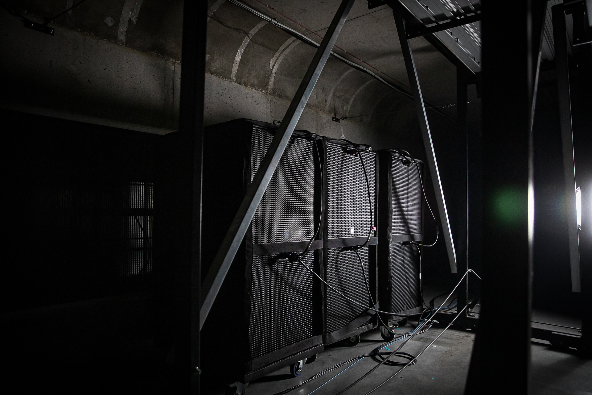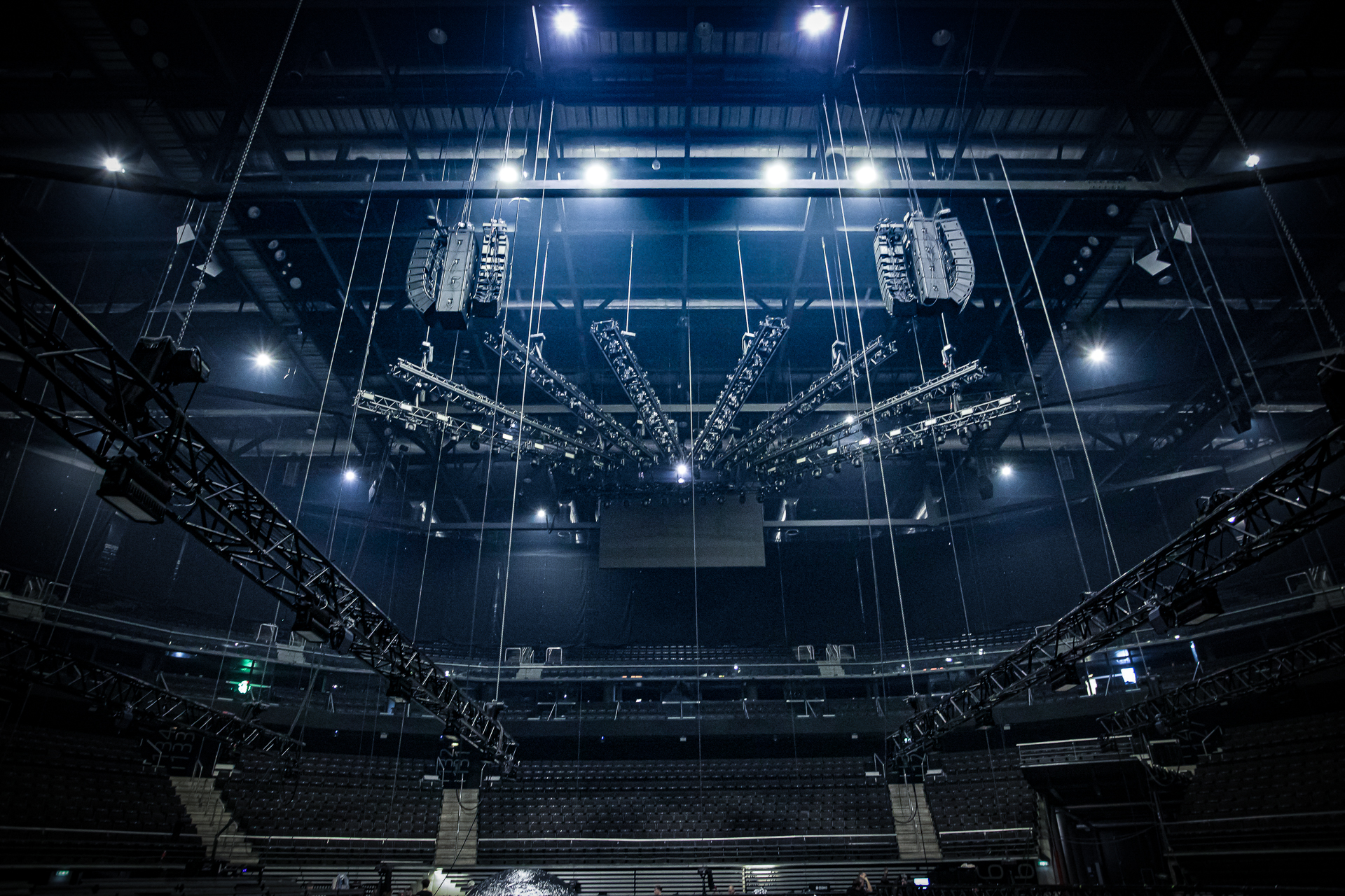 Die Tieftonverstärkung erfolgte durch eine Kombination aus gehängten und am Boden gestapelten Subwoofern, wobei zusätzliche Subwoofer unter den Tribünen platziert wurden, um eine gleichmäßige Tieftonenergie im gesamten Zuschauerbereich zu gewährleisten.