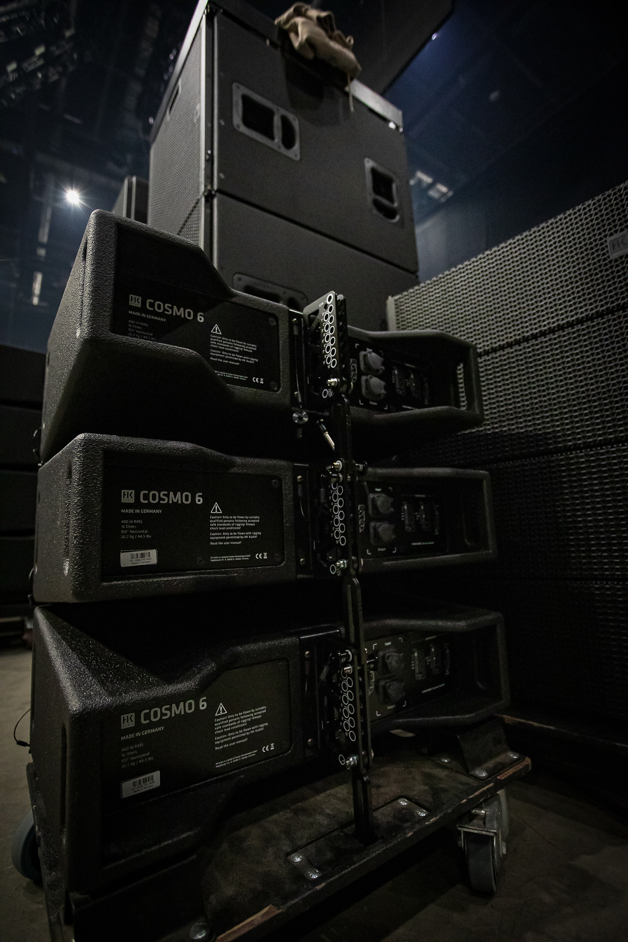 Das Herzstück der Installation bildete ein umfangreiches COSMO-Line-Array-System, bestehend aus insgesamt 110 Mittel-/Hochton-Einheiten und 149 Lautsprechern. Eine Kombination aus COSMO C10-, C8- und C6-Modulen wurde in zehn Hängen eingesetzt, um eine gleichmäßige Abdeckung in der gesamten Arena zu erreichen.